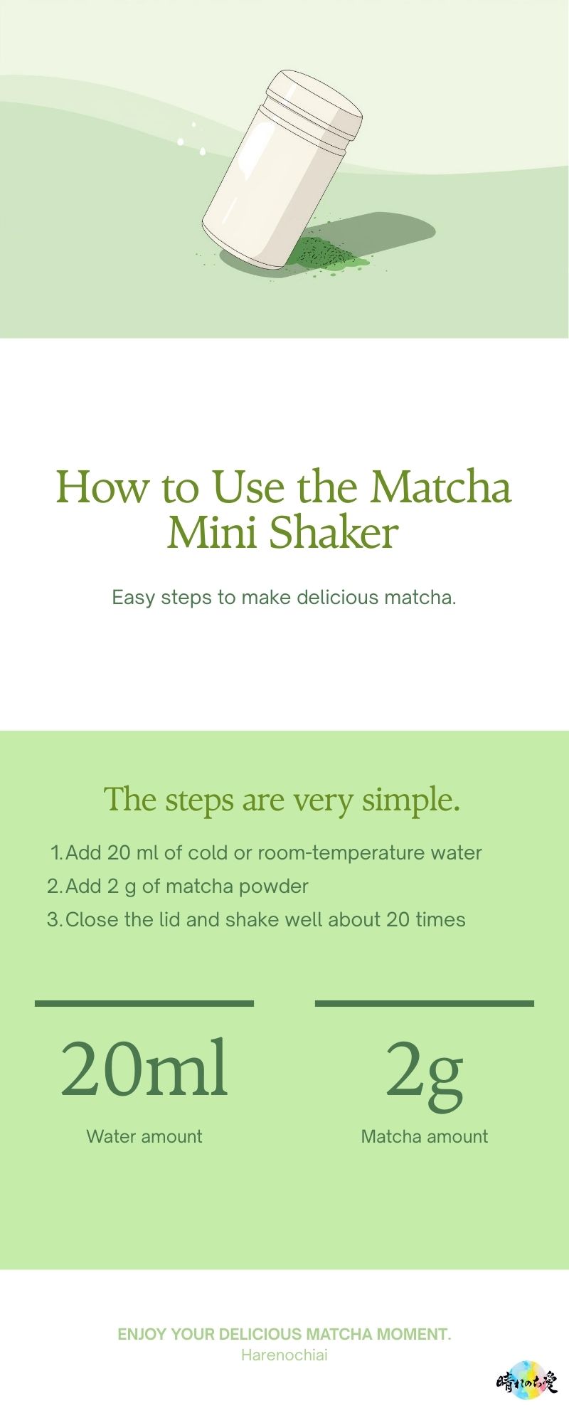 The Matcha Mini Shaker features a special design that helps prevent matcha from forming lumps.